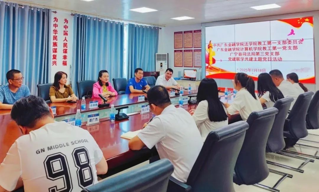 广东金融学院计算机学院介绍了学院教工第一党支部充分利用专业优势,将党建工作与专业教育紧密结合,成功获评第五批全省新时代高校党建示范创建和质量创优工作“党建工作样板支部”创建单位立项的情况,期待三方通过党组织联学联建凝聚共识,搭建党员先锋实践平台,立足“AI+法治宣传”等领域深化合作。
